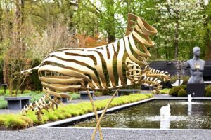 Ultimately, the statue ended up in a beautiful garden where it jumps over the water. It’s the Serengeti in your own backyard, right?