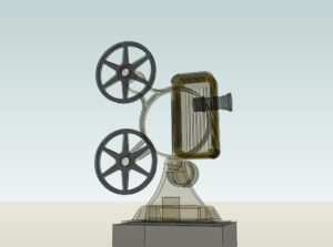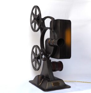 De basis van dit beeld is een projector uit de vijftiger jaren van de vorige eeuw. Ben Hur en Rebel Without a Cause met James Dean werden hiermee vertoond.