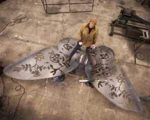 Ze zijn door geëvolueerd, van groen brons, naar RVS en naar een heel groot formaat in het mooie Cortenstaal.